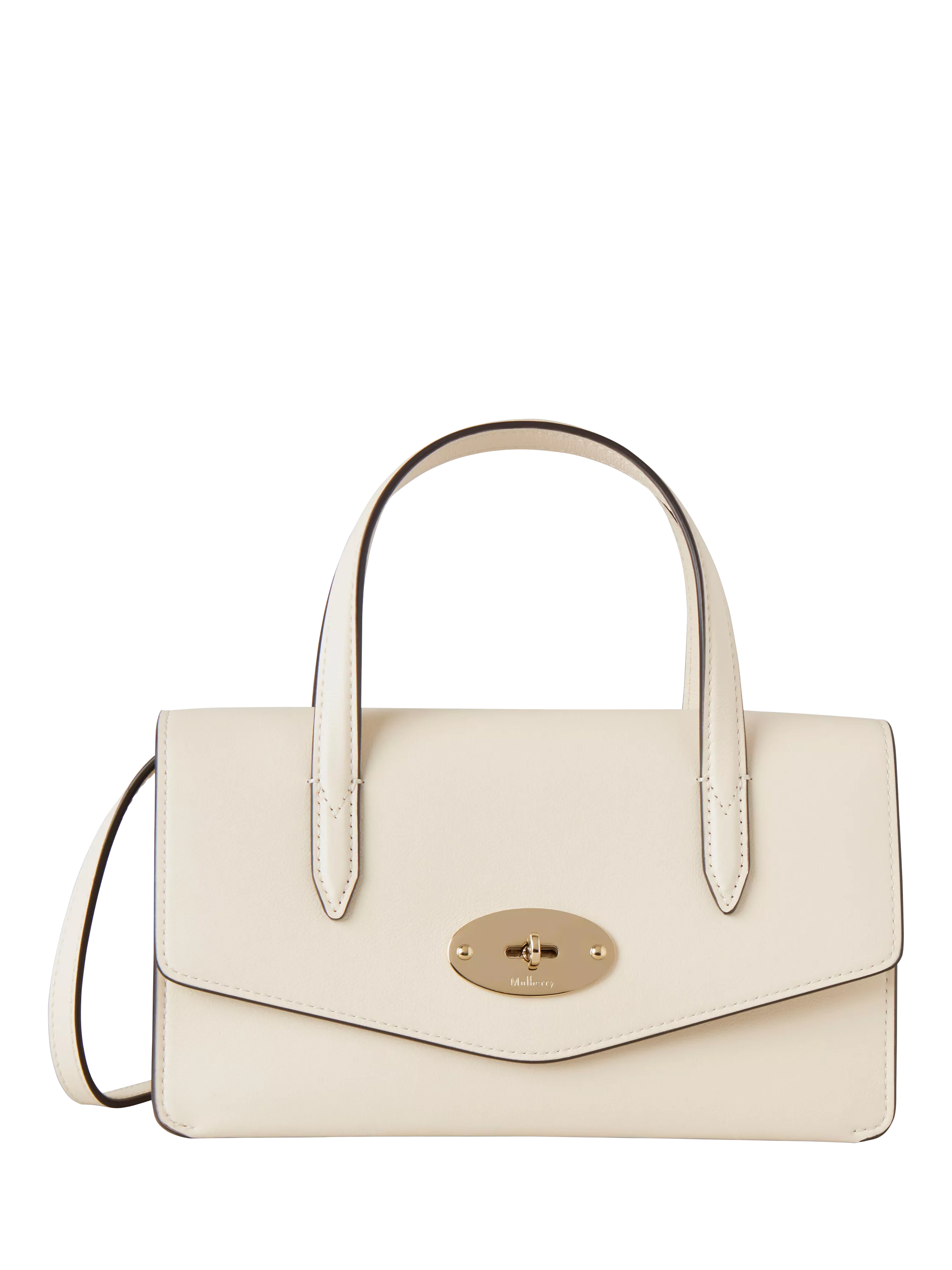 A sleek style perfectly showcasing its iconic Postman's Lock, the Small Darley Top Handle from Mulberry is sized to fit the essentials. Its elegant envelope silhouette can be transformed into a clutch due to its detachable chain strap, with a new Top Handle design for added functionality.