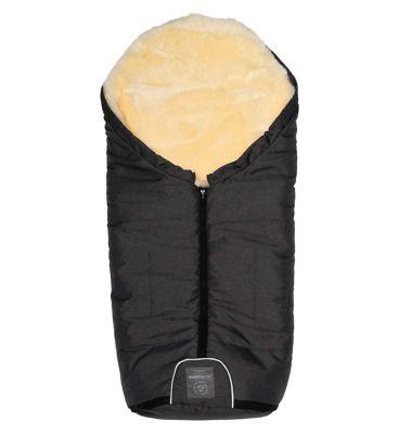 This luxurious Merino sheepskin footmuff is designed to provide exceptional, natural warmth and comfort for infants when travelling outdoors. The deep charcoal grey exterior maintains a sophisticated appearance while the plush interior ensures cosy insulation in colder conditions. This universal design fits securely within most prams and car seats for reliable use.