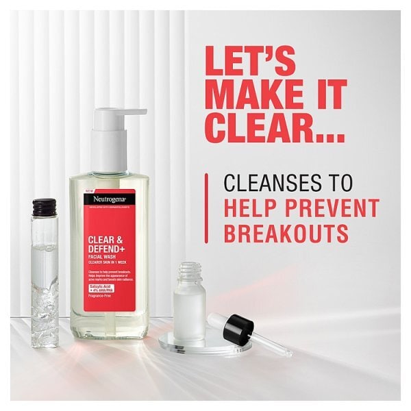 This Clear Defend facial wash is designed to deliver visibly clearer skin within one week. It actively cleanses the skin barrier to help stop future breakouts from forming. This formulation also works to improve the look of existing acne marks and promotes a natural radiance boost.