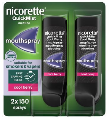 Nicorette QuickMist Cool Berry Mouthspray is supplied here as a convenient duo pack for comprehensive support. This format ensures you have rapid access to relief whenever challenging moments arise. This oral spray delivers 1mg of fast-acting nicotine directly into your mouth for swift absorption.
