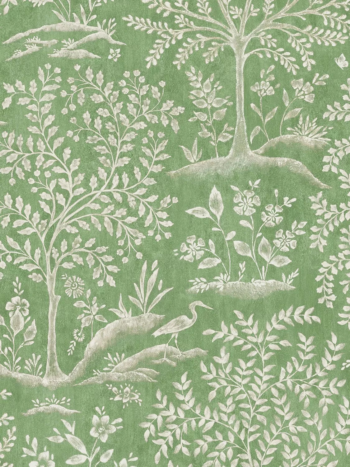 Enchanted woodland scenes of trees, plants, animals and birds are illustrated in painterly silhouettes on coloured grounds.