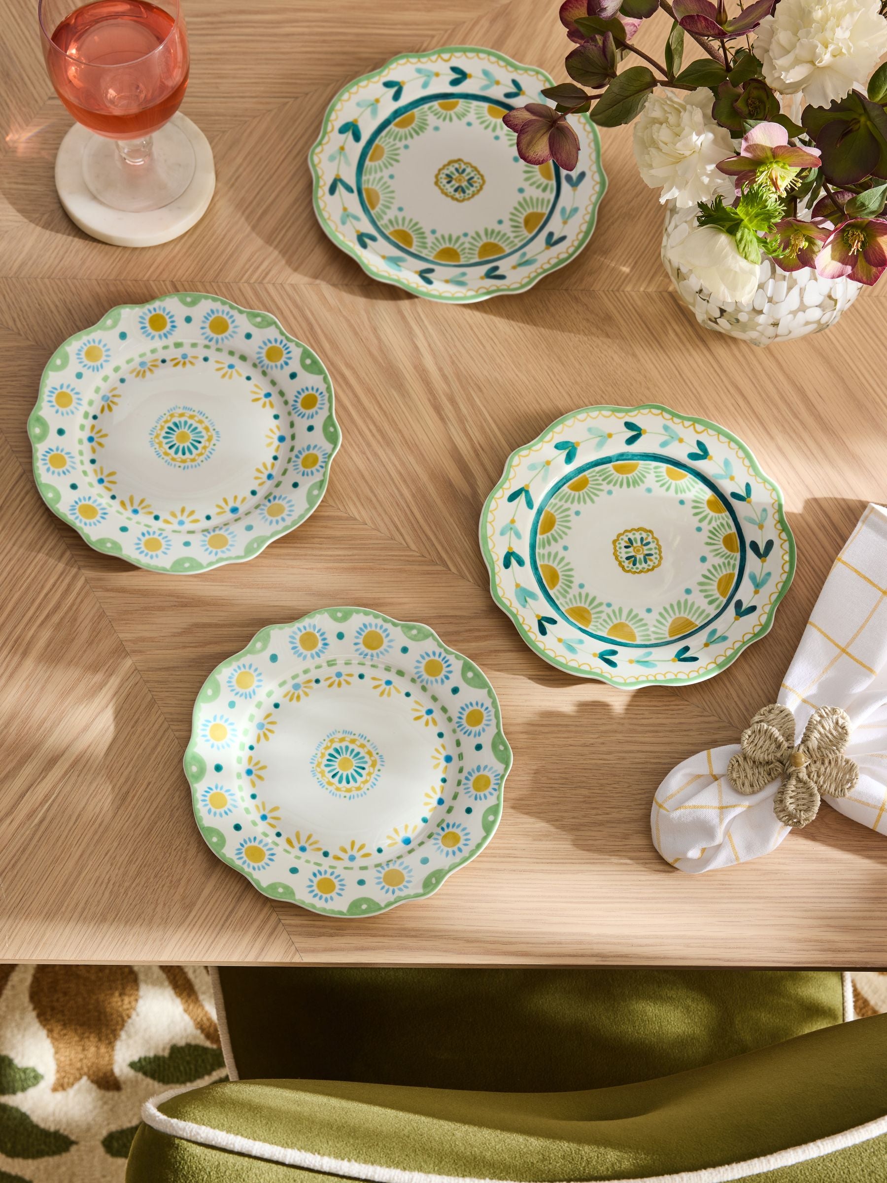 Nina Campbell Set of 4 Yellow/Teal Floral Print Side Plates