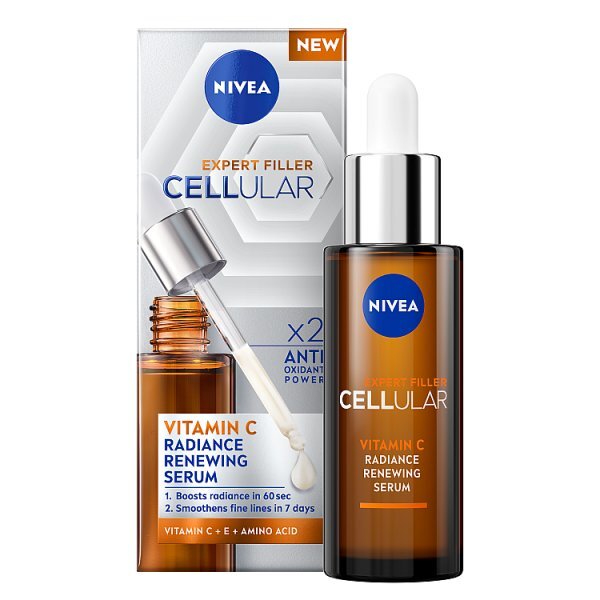 The Nivea Cellular Expert Vitamin C Radiance Renewing Serum Is An Advanced Solution For Radiant, Smooth, Younger-Looking Skin. With Its Light, Non-Greasy Formula, The Vitamin C Radiance Renewing Serum Provides An Immediately Refreshed, Smooth Skin Feel. Vitamin C And Vitamin E Provide 2X Anti-Oxidant Power To Protect From Free Radicals And External Stressors (I.E., Pollution, Sun Damage), Helping To Correct And Prevent Early Signs Of Aging. The Third Active Ingredient Is An Amino Acid, A Naturally Occurring Moisturising Factor In Skin. It Is Known To Actively Support Skin‘S Hydration Level And Leave Skin‘S Surface Well-Hydrated And Smoothened. The Cellular Expert Vitamin C Radiance Renewing Serum Instantly Boosts The Skin'S Radiance, Leaving It Feeling Renewed And Refreshed. Within The First Day Of Application, The Skin Feels Long-Lastingly Hydrated And Supple. After A Week Of Application, The Product Visibly Smooths Fine Lines, Resulting In More Even And Radiantly Younger-Looking Skin. Dermatologically Approved, The Vitamin C Radiance Renewing Serum Is Gentle On The Skin And Effective For All Skin Types, Including Sensitive Skin. Independent Institutes Have Validated Efficacy. Product Benefits: Boosts Radiance In 60 Sec Smoothens Fine Lines In 7 Days X2 Anti Oxidant Power Vitamin C + E + Amino Acid Dermatologically Approved