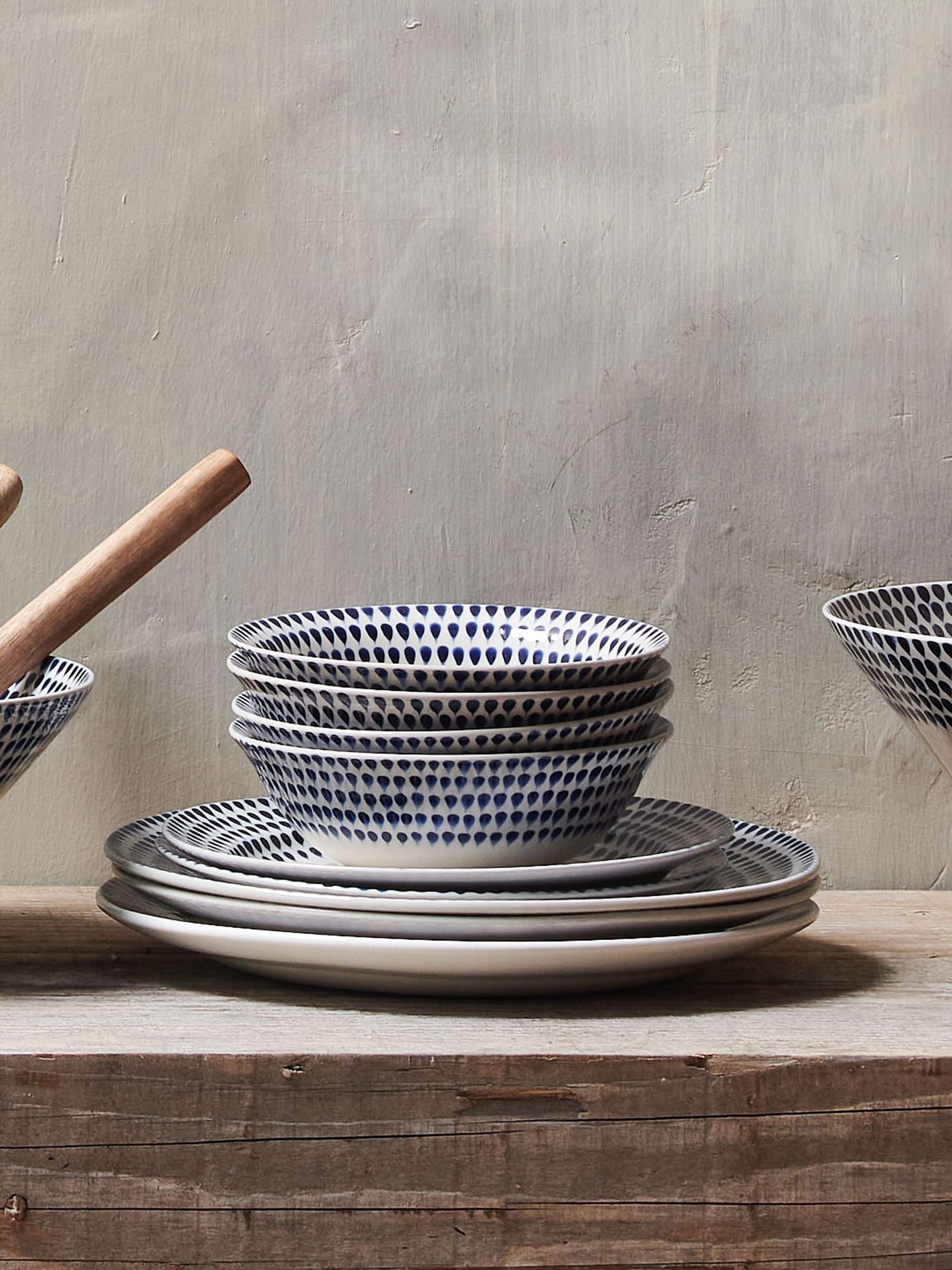 Nkuku Cream Indigo Indigo Drop Ceramic 12 Piece Dinnerware Set
