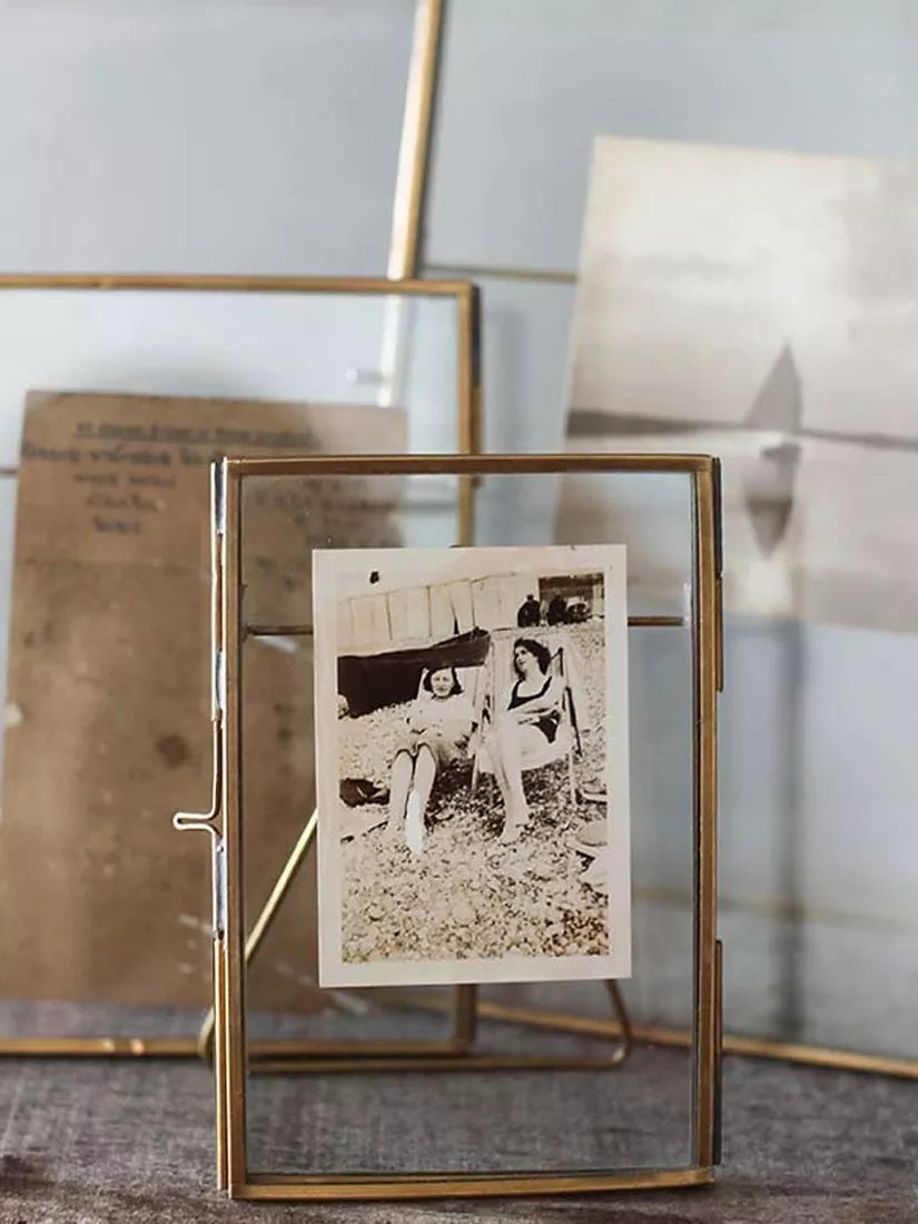 The warm tones of this antique brass frame against the see-through glass make the Danta frame a special design for a photo, pressed flowers or other keepsakes. Mix and match the sizes to create an eye-catching display. Each frame is handmade for Nkuku by skilled artisans in India, using traditional tools and techniques, and is finished with a recycled sari tie.