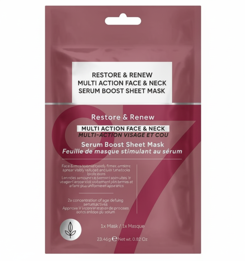 No 7 Restore & Renew FACE & NECK MULTI ACTION Serum Boost Sheet Mask