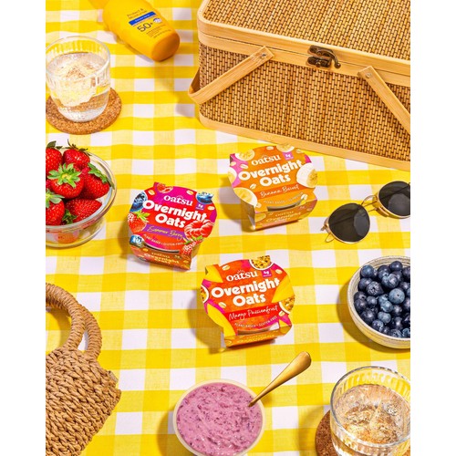 Oatsu offers a convenient, ready-to-eat overnight oat breakfast, eliminating preparation time.