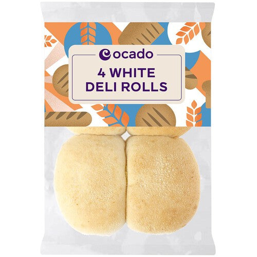 Ocado White Deli Rolls provide a soft base for crafting your ideal lunch creation. These four individual white bread rolls are lightly topped with maize for a subtle texture difference. Their size makes them ideal for building satisfying sandwiches filled with fresh ingredients and sauces. Enjoy the reliable quality expected from Ocado's bakery selection.