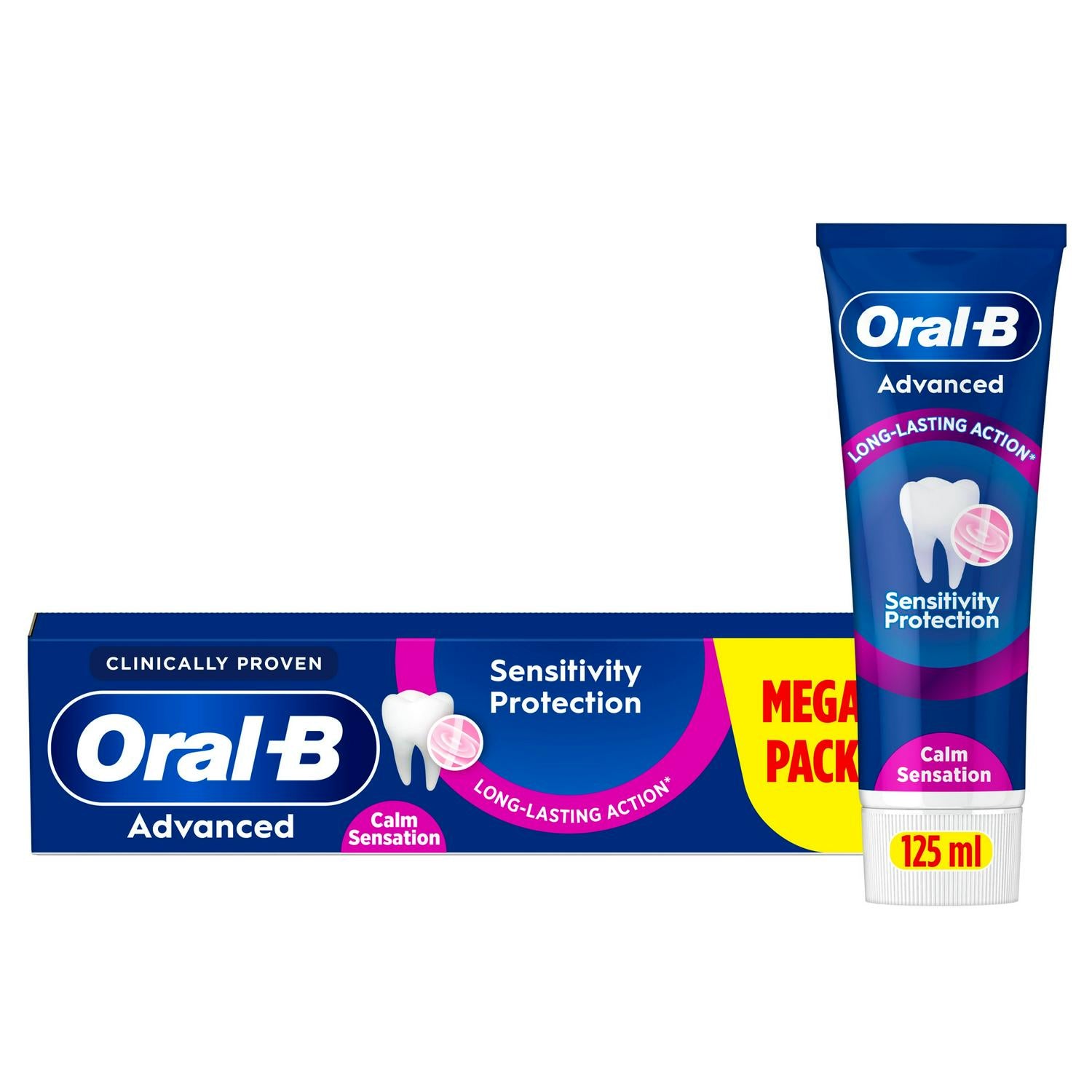 Oral-B Advanced Sensitivity Protection toothpaste provides effective, long-lasting relief for sensitive teeth with regular use. This daily formula uses Stannous Fluoride Complex combined with Active Calm Agents to build a protective shield against sensitivity, even between brushing.