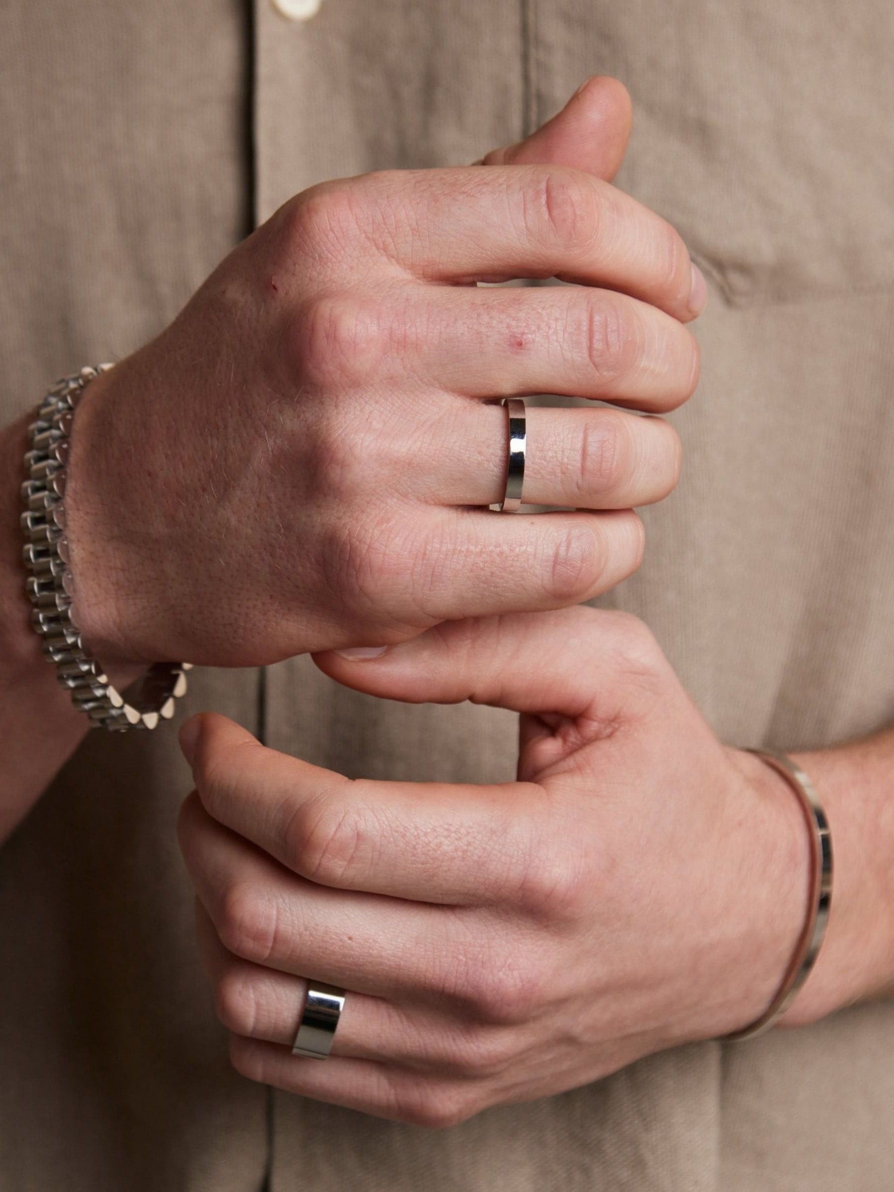 A set of silver stacking rings from Orelia. These rings are stainless steel based, and are waterproof.