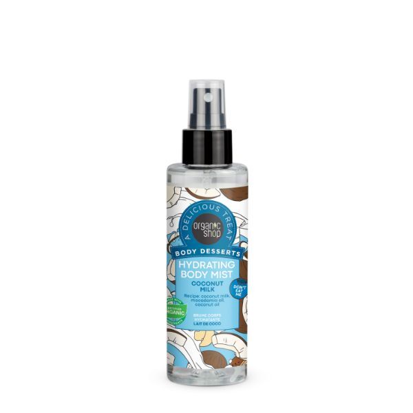 - Scented with a yummy moisturizing blend of coconut milk, macadamia and coconut oils, this mist perfectly hydrates skin and leaves it glowing, soft and supple. Part of the Organic Shop Delicious Body Desserts Collection