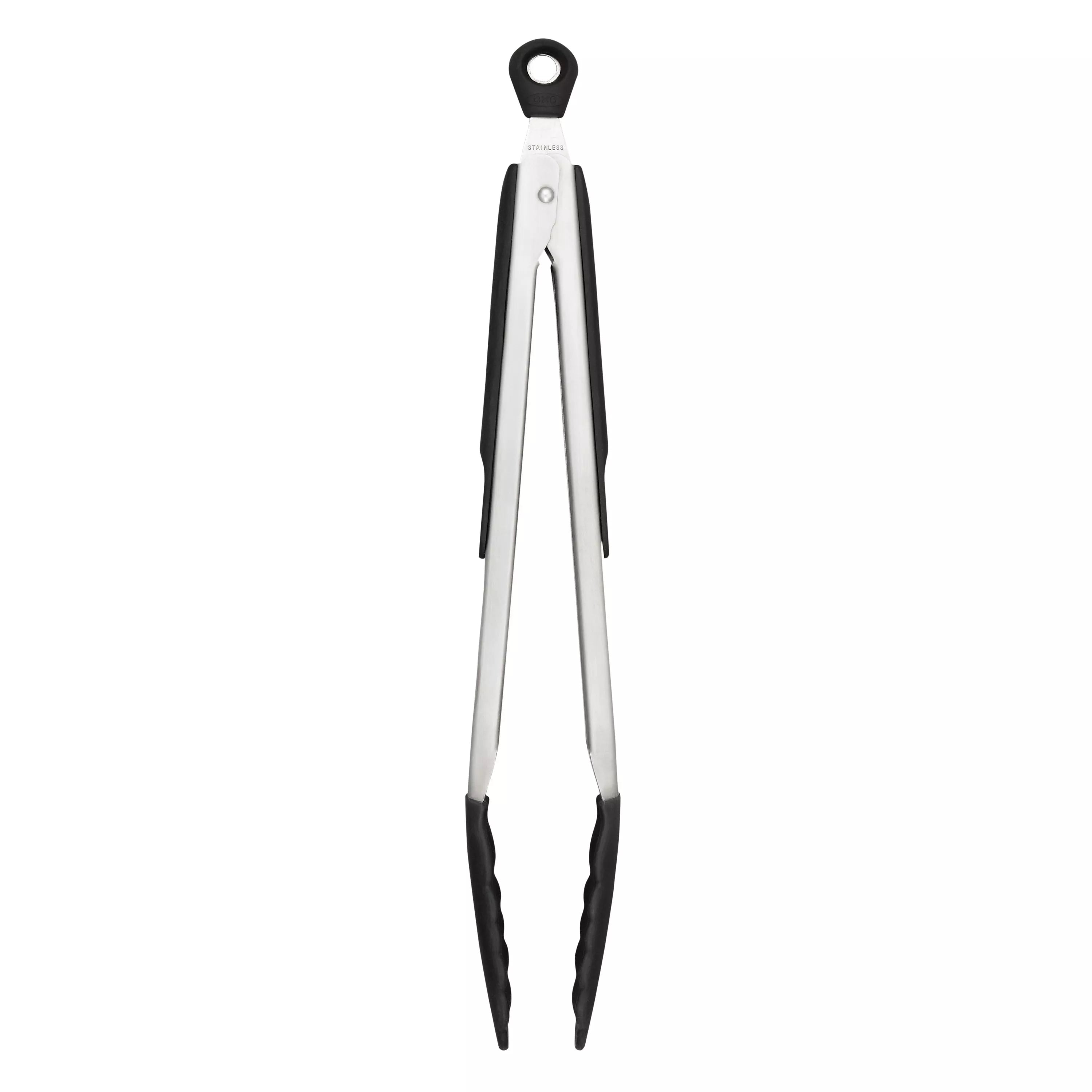 Turn, turn, turn. It's easy work with these classic tongs from OXO Good Grips, made with silicone heads that protect non-stick finishes. The heads are heat resistant to 310°C/600°C and work well for scraping pans without scratching. Like all OXO tongs, these lock for convenient storage and have just the right amount of tension for a comfortable and secure grip.
