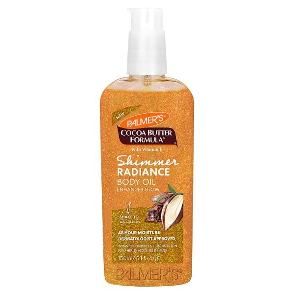 palmers shimmer radiance body oil is crafted with intensively moisturizing cocoa butter and a kiss of shimmer for instant nourishment and gorgeous illuminated skin