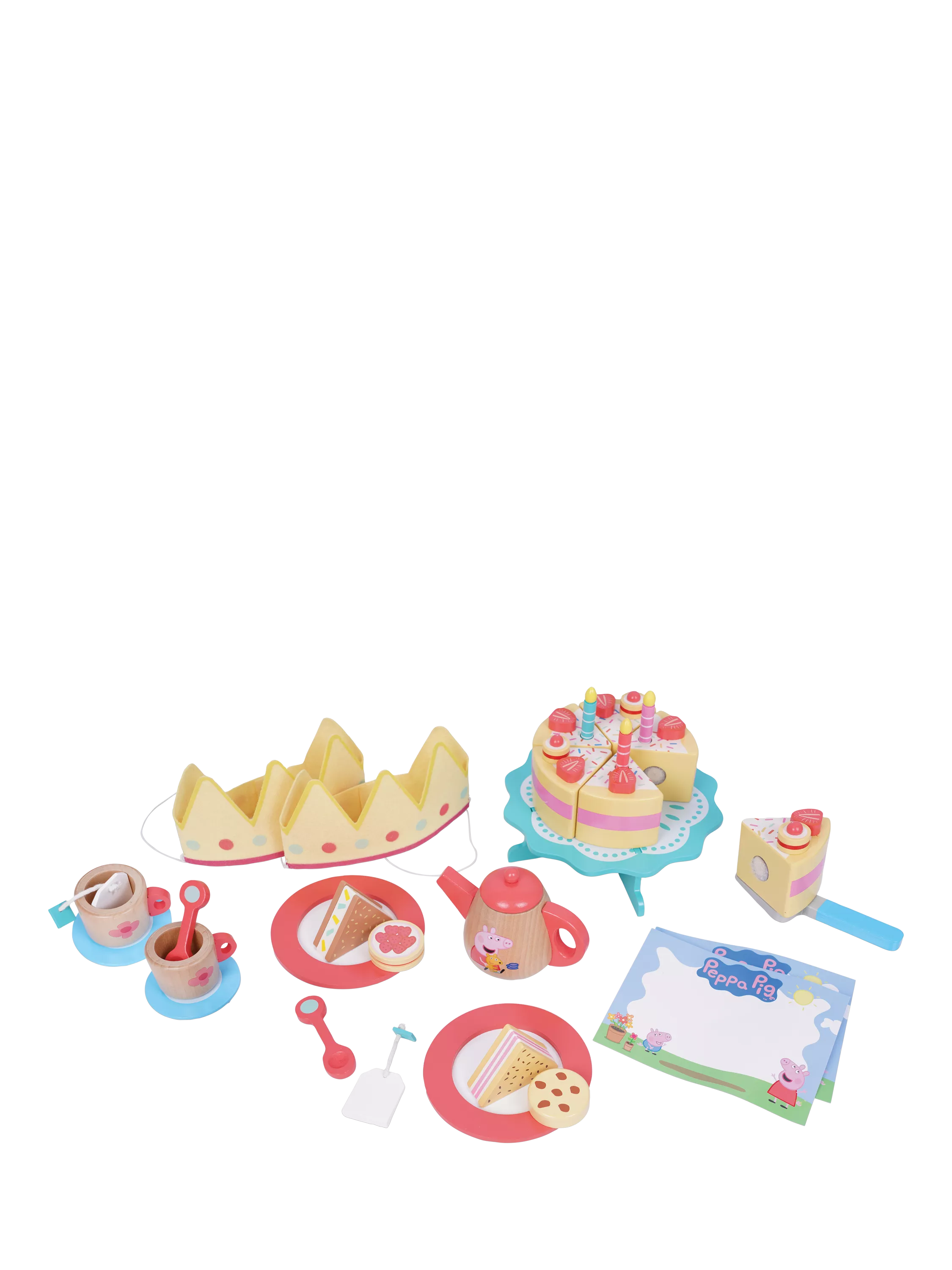 It's Tea Time! Little ones can serve up a perfect cup of tea with cake, sandwiches and biscuits to any lucky visitor with this charming Wooden Peppa Pig Tea Party Set to spark imagination alongside Peppa Pig.