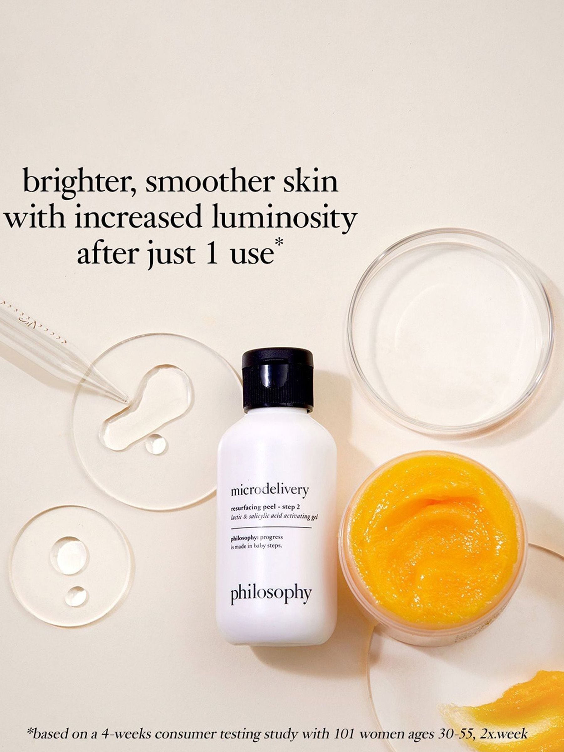 This next generation microdelivery vitamin C peel delivers peptides to the skin as it is being rapidly exfoliated by the salicylic acid activating gel. our at home peel resurfaces and replenishes the skin at the same time, which is a new approach to skin rejuvenation. and, best of all, this at home peel involves absolutely no downtime. Use this 2 step vitamin C & salicylic acid peel once per week.-replenishes with skin brightening vitamin c-skin firming peptides help smooth rough texture, even skin tone and minimize the appearance of fine linesawards: allure best of beauty 2014,qvc customer choice beauty awards 2018. Clinical results: 100% of participants reported their skin was smoother after just one use. 88% of participants thought their skin felt more hydrated after using the microdelivery peel. The set includes: Vitamin C/peptide resurfacing crystals.