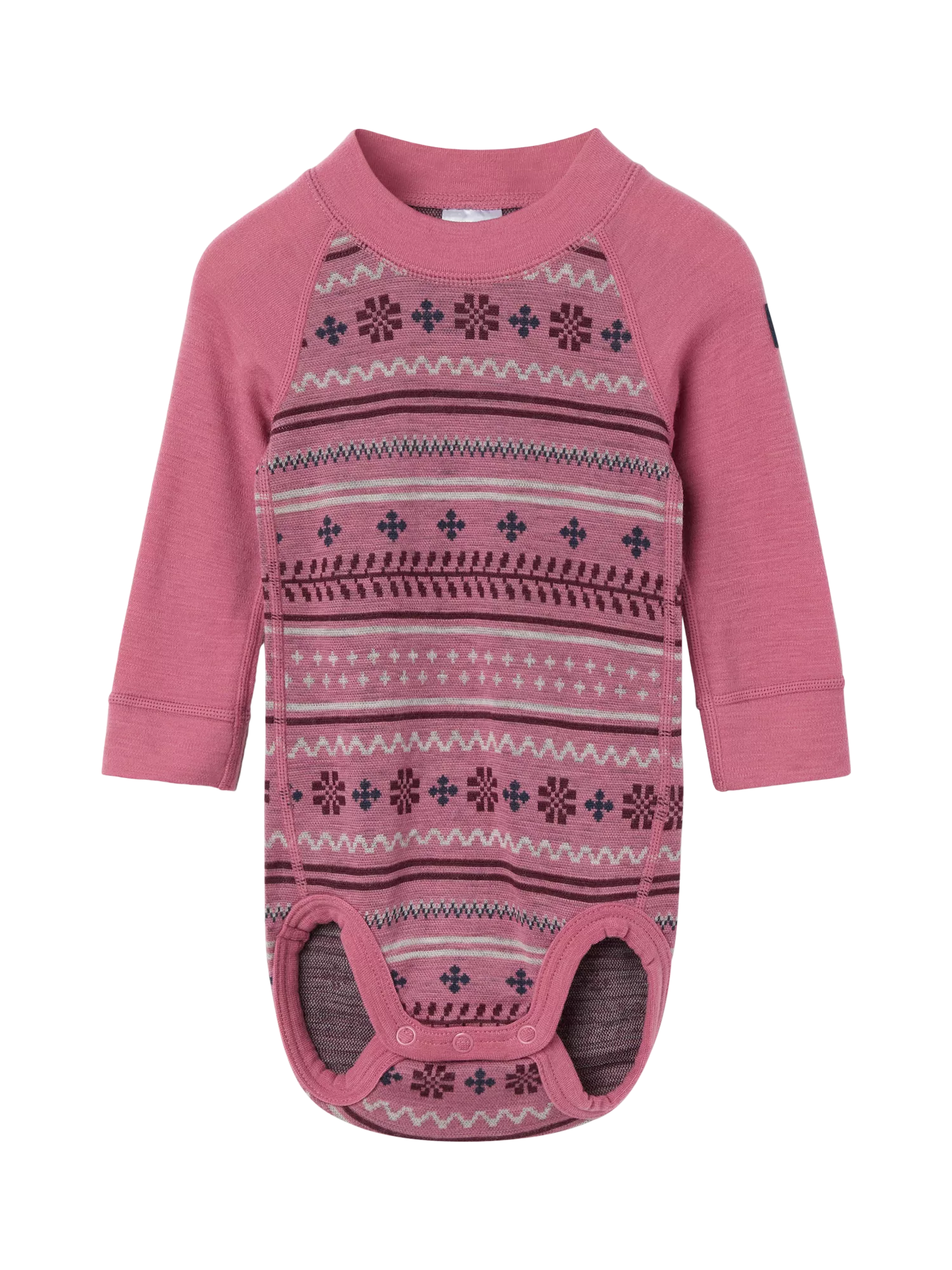 This comfy Nordic style body suit is perfect for wearing as a first layer on colder days. The soft, non itchy merino wool cleverly retains body heat yet wicks away moisture from the skin keeping your child happy, warm and dry.