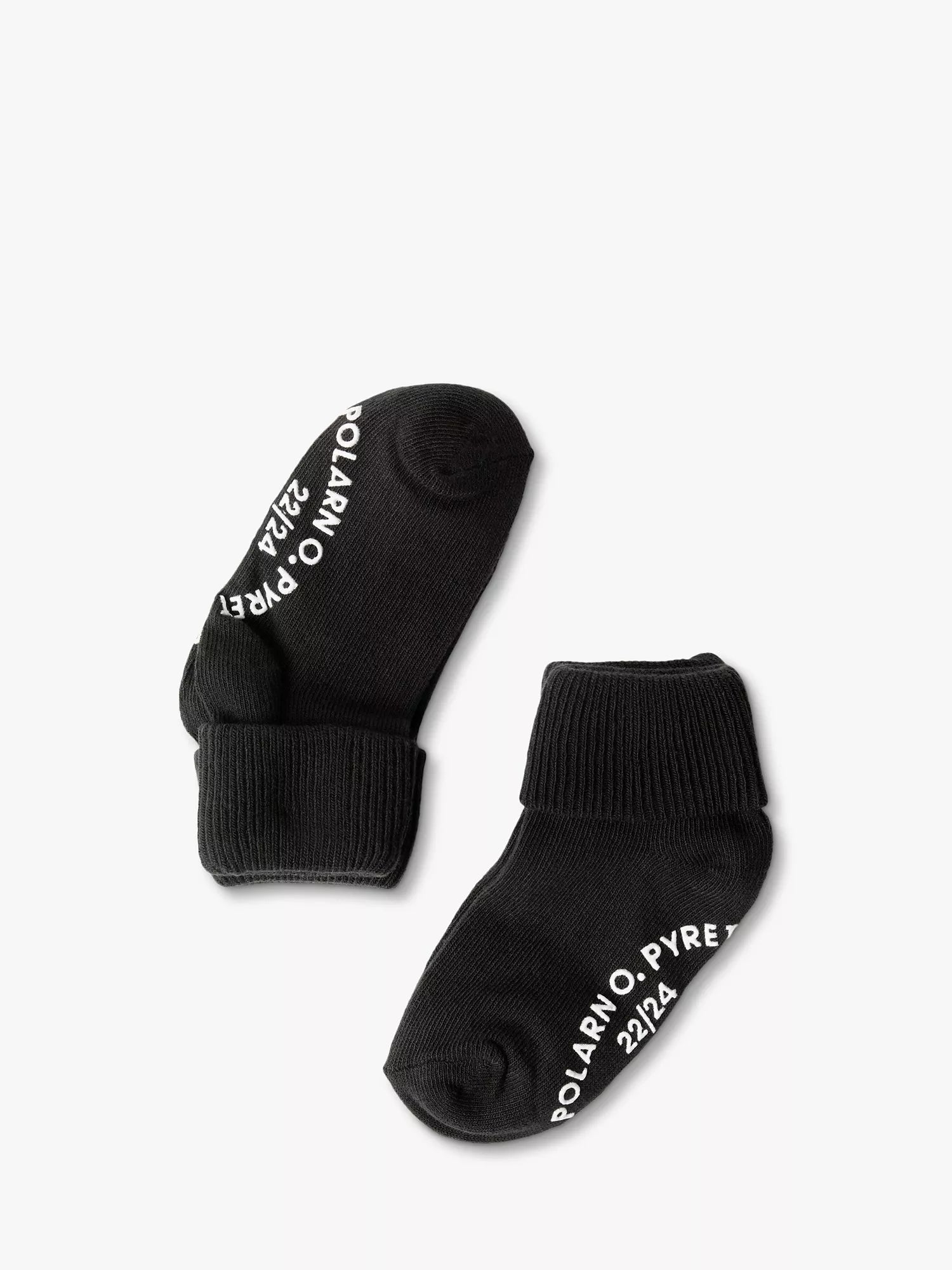 In a handy pack of two, these essential socks from Polarn O. Pyret are ideal for everyday. They have smart fitted feet and a generous elasticated cuff to make sure they stay up. The anti-slip logo on the base is ideal for wooden and laminated surfaces, making these a great choice for little walkers.