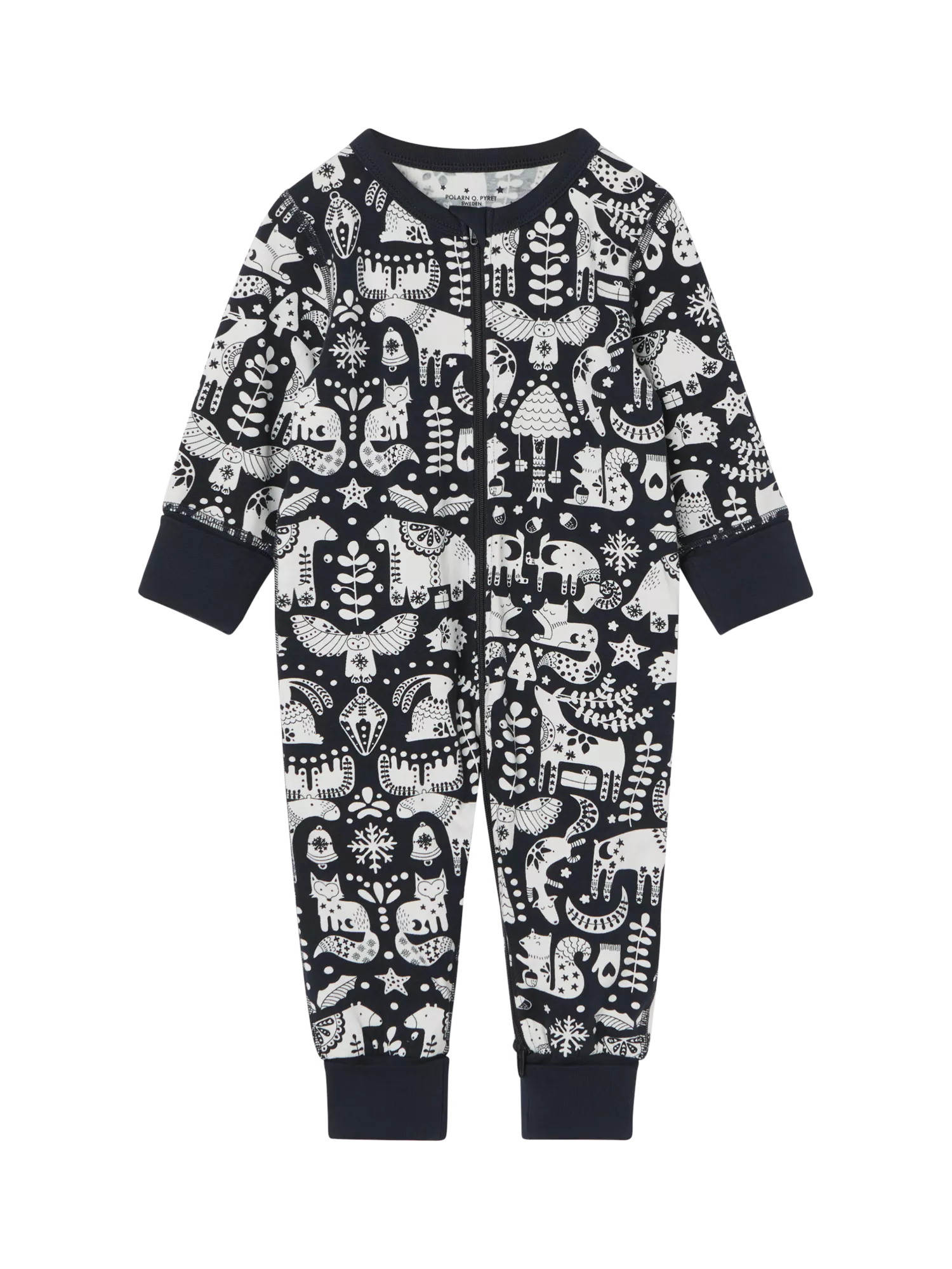 These dream friendly sleepsuit made in softest organic cotton blend, with comfy flat seams that are gentle on the skin. Designed in a footless style with a seasonal print, clever foldable cuffs give lots of grow room and a full length two-way zip, with chin guard, for fuss-free dressing.