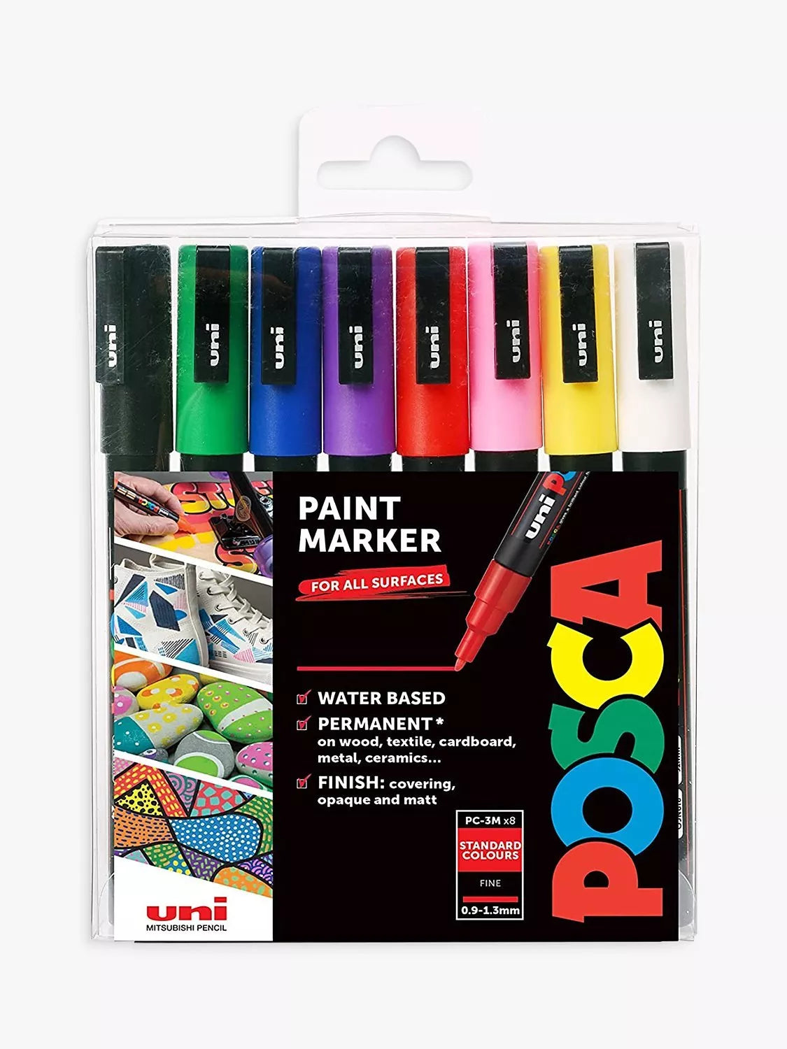 POSCA paint markers are an excellent multi-surface, creative pen. These fine paint markers contain water-based pigment ink which is lightfast, water resistant and will write on almost any surface.