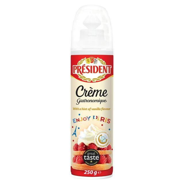 Product details Description UHT sterilised cream under pressure with sugar and vanilla flavour UHT Dairy Spray Cream Thick and creamy with a hint of vanilla flavour Professional nozzle to create perfectly formed creamy swirls Excellent topping for cakes, pancakes, hot chocolate and more Suitable for vegetarians Président Spray Cream is... Read More