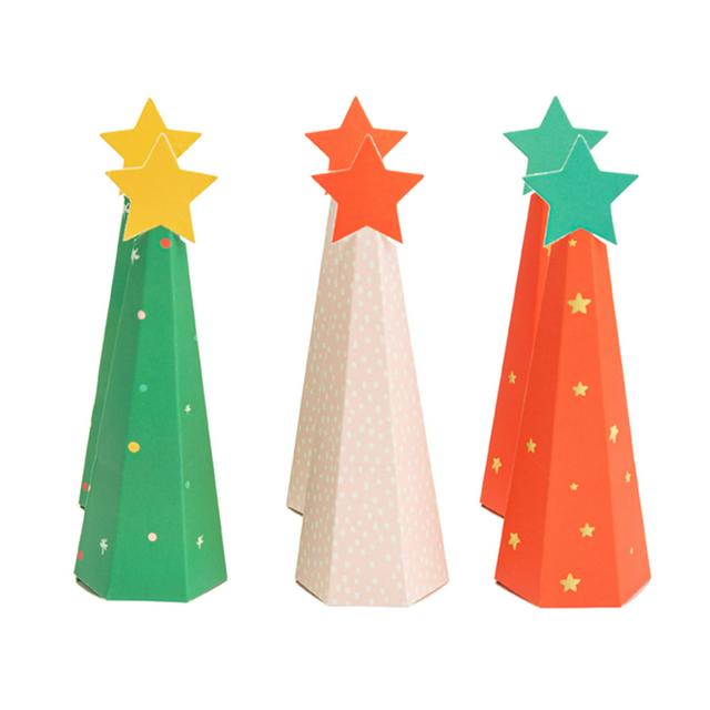 These Professor Puzzle items are decorative cones crafted from cardstock, ideal for festive table settings or events. They are designed to resemble colourful Christmas trees complete with star toppers, adding a playful element to your décor.