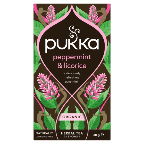 Enjoy this naturally sweet, refreshing herbal tea creation by Pukka.
