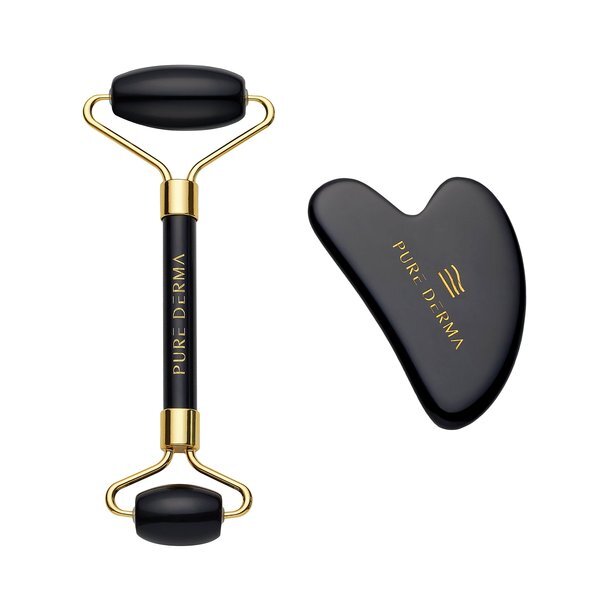 Pure Derma London Black Obsidian Gua Sha & Face Roller Set