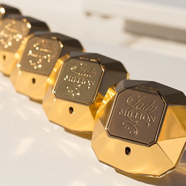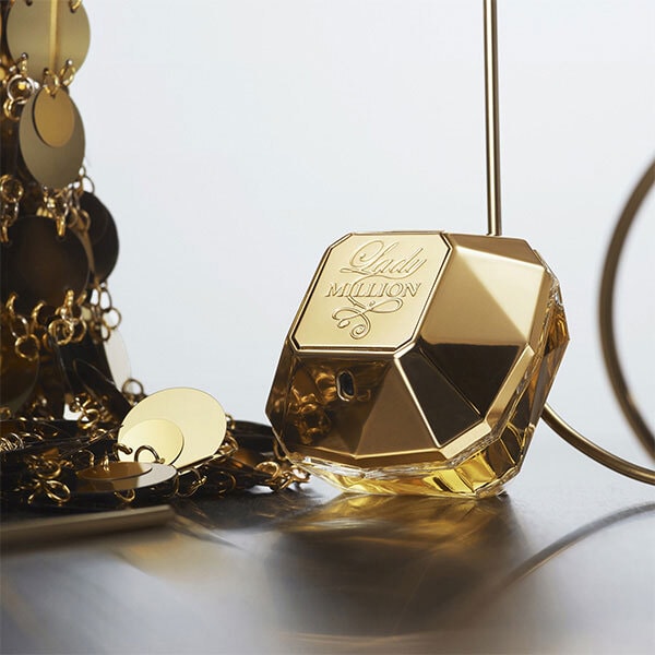 Rabanne Lady Million is an ultrafeminine fragrance crafted for the confident woman. This scent delivers a diamond-bright and daring shine, embodying glamour through its striking gilded gold bottle design. It offers a truly thrilling experience.