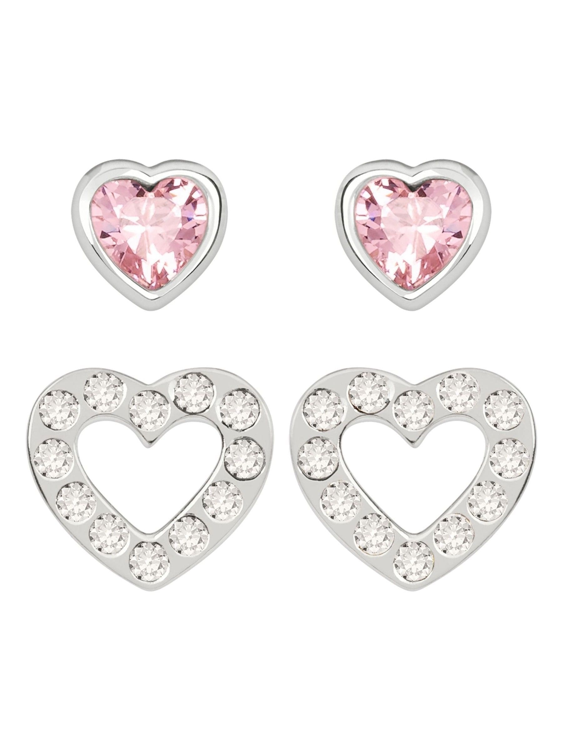 Radley Ladies Sterling Silver Heart Twin Pack of Studs. Featuring a Silver heart stud with a Pink glass heart shaped stone and a polished silver heart with clear china glass stones. Includes Radley giftable packaging.