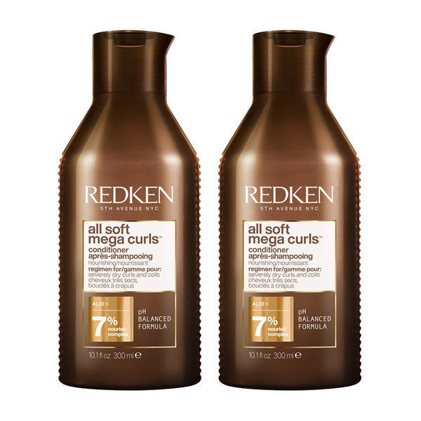 Stock-up and save with this handy double containing 2 x Redken All Soft Mega Curl Conditioner 300ml. Transform severely dry, curls and coils into visibly healthier and less damaged locks with Redken All Soft Mega Curl Conditioner, experience up to 72 hours of nourished and defined curls This conditioner technology is enriched with Inca Inchi Oil to repair and nourish brittle hair and Cactus Flower extract to add an overall shine and bounce. Its 7% Nourish Complex complements the star ingredient Aloe Vera that improve moisture levels in the hair as it plays as a humectant that nourishes and quenches. Rich in fatty acids, amino acids and vitamins, this conditioner plays a part in healthy looking hair in your wash day regimen. The All Soft Mega Curl range is vegan. Ingredients: AQUA/WATER/EAU, CETEARYL ALCOHOL, AMODIMETHICONE, BEHENTRIMONIUM METHOSULFATE, BEHENTRIMONIUM CHLORIDE, DIPROPYLENE GLYCOL PARFUM / FRAGRANCE, PHENOXYETHANOL, BENZOIC ACID, TRIDECETH-6 HYDROXYPROPYL GUAR, POTASSIUM HYDROXIDE, GLYCERIN, SODIUM COCOYL AMINO ACIDS, CETRIMONIUM CHLORIDE, POTASSIUM DIMETHICONE PEG-7 PANTHENYL PHOSPHATE, SODIUM SARCOSINATE, CARAMEL, PROPYLENE GLYCOL, BENZYL ALCOHOL, COUMARIN, LINALOOL, BENZYL BENZOATE, ALOE BARBADENSIS LEAF JUICE POWDER, ARGININE, HYDROLYZED SOY PROTEIN, HEXYL CINNAMAL, PLUKENETIA VOLUBILIS SEED OIL, LIMONENE HYDROLYZED VEGETABLE PROTEIN PG-PROPYL SILANETRIOL, CEREUS GRANDIFLORUS FLOWER EXTRACT/CACTUS FLOWER EXTRACT, GLUCOSE, SODIUM BENZOATE, LACTIC ACID, POTASSIUM SORBATE, TETRASODIUM EDTA, TOCOPHEROL