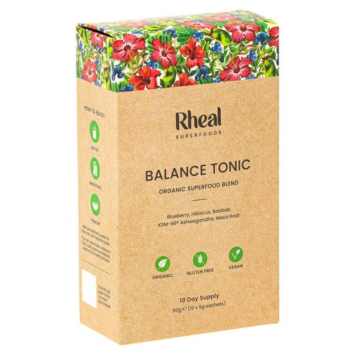 Rheal Superfoods Balance Tonic Sachets are formulated using five potent organic superfoods. This blend is designed to naturally support your inner balance and promote a sense of calm during busy periods.