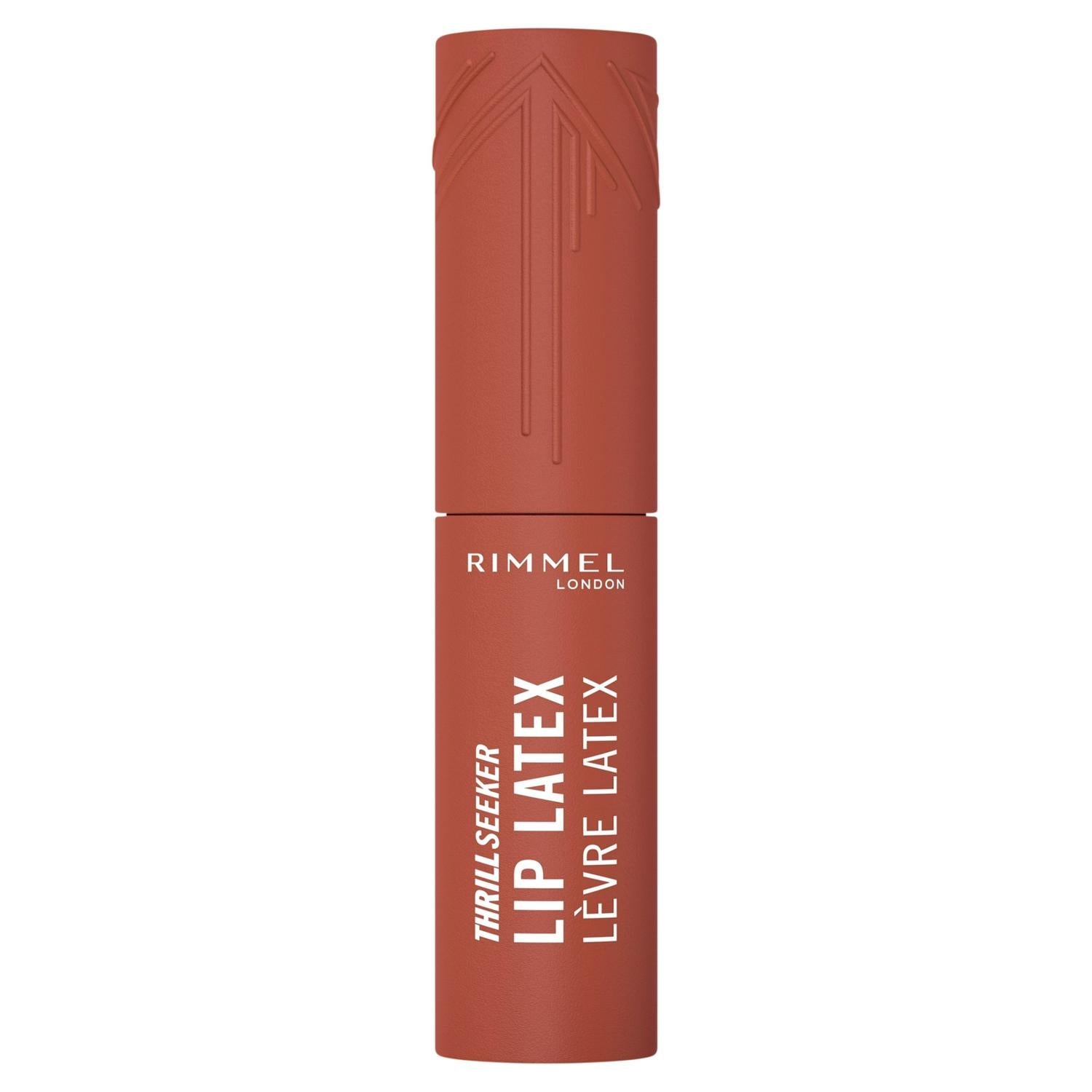 Extreme 3 D Latex Shine with Unstoppable Colour in One Swipe Get a bold unstoppable look in one swipe with Rimmel Thrill Seeker Lip Latex. The liquid lipstick drenches lips in extreme, vivid colour with a lasting lip stain, delivering instant shine, a hit of hydration, comfort that lasts all day and an ultra-smooth finish.