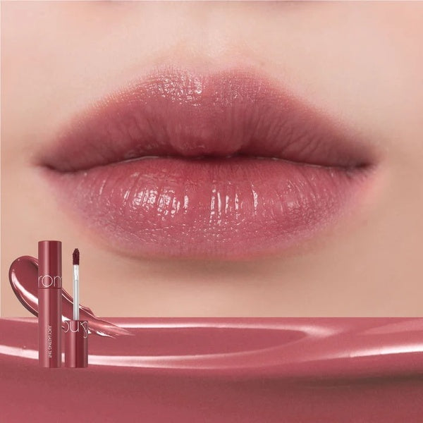 This Rom&nd Juicy Lasting Tint is formulated with plant-based oils to deliver exceptional moisture. It functions as a tinted balm, offering a smooth, transparent gloss finish upon application.