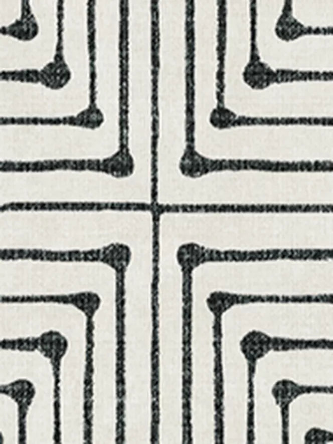 Stripes get a chic makeover. Sharp lines form a striped, geometric pattern on this rug. Water-resistant, stain-resistant, and machine-washable.