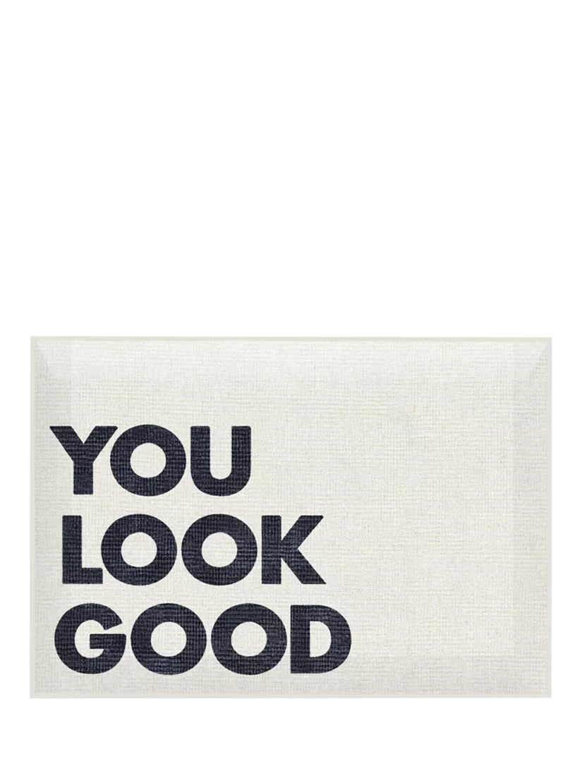 A daily reminder that you look like a million bucks! Our modern and quirky You Look Good Bath Mat features the playful message written in bold black type set atop a contrasting off-white background. Made from our highly absorbent, quick-drying, machine-washable tufted material.