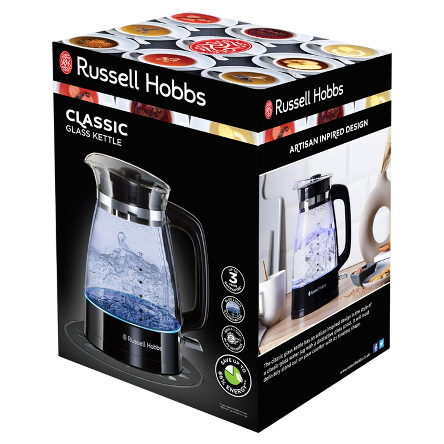 This Russell Hobbs Black Classic Glass Kettle features a sophisticated design blending glass with black accents. Its 3000W element ensures rapid heating for your drinks. The artisan-inspired glass spout adds a distinctive visual element to your countertop setup.