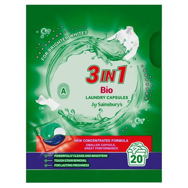 Sainsburys 3 in 1 Bio Laundry Capsules 20 Washes