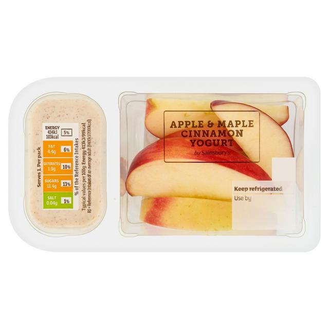 This product combines sweet apple pieces with a rich, Greek style yogurt dip, flavoured distinctly with real maple syrup and warming cinnamon. It provides a convenient and tasty option for lunchboxes or as a satisfying treat throughout the day. The 105g portion size is ideal for individual consumption.