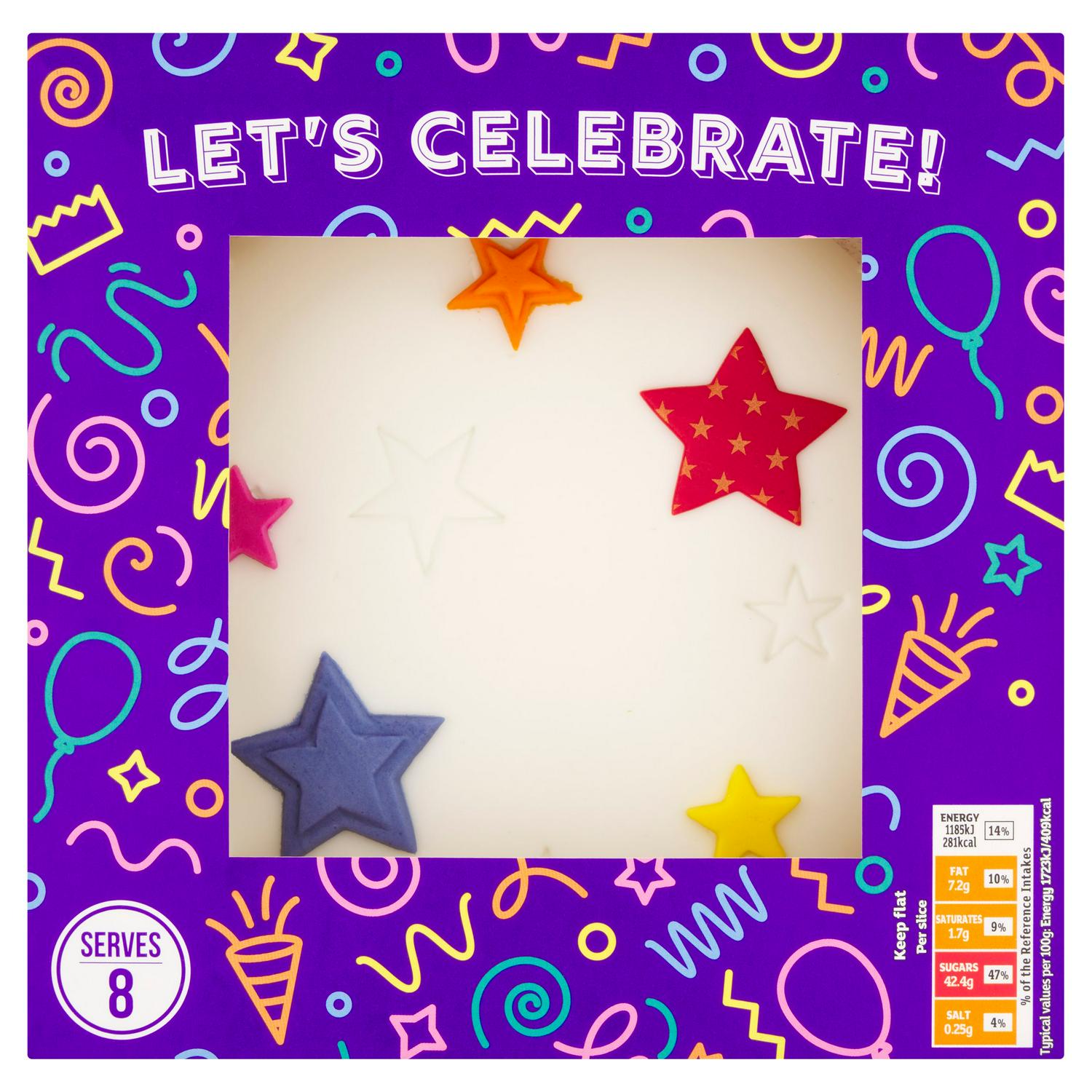 Read MoreMadeira cake, layered with frosting and raspberry jam, covered with white soft icing and finished with edible star decorations
