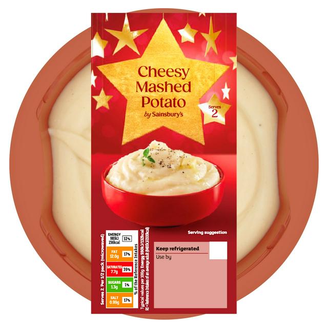 Enjoy this comforting side dish featuring creamy mashed potatoes blended with authentic extra mature Cheddar cheese from Sainsbury's. This quick offering yields a satisfying flavour profile suitable for various meals. It is conveniently packaged to serve two people, streamlining your dinner preparation time considerably.