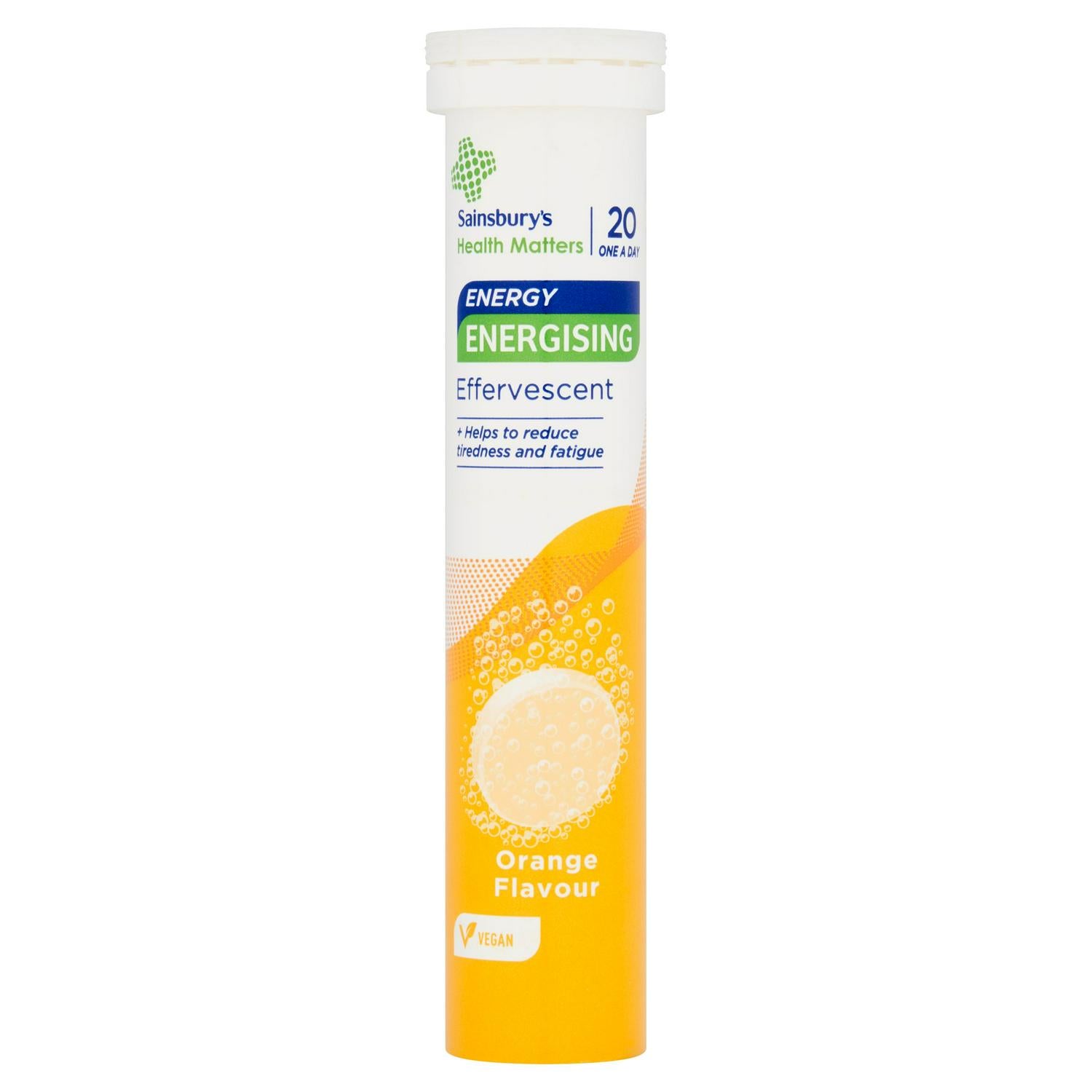 This Sainsbury's Health Matters product provides an orange-flavoured, energising solution to support daily wellness routines. These effervescent tablets are designed for easy consumption by simply dissolving them in water. The packaging confirms that this supplement specifically helps to reduce tiredness and fatigue throughout your day.