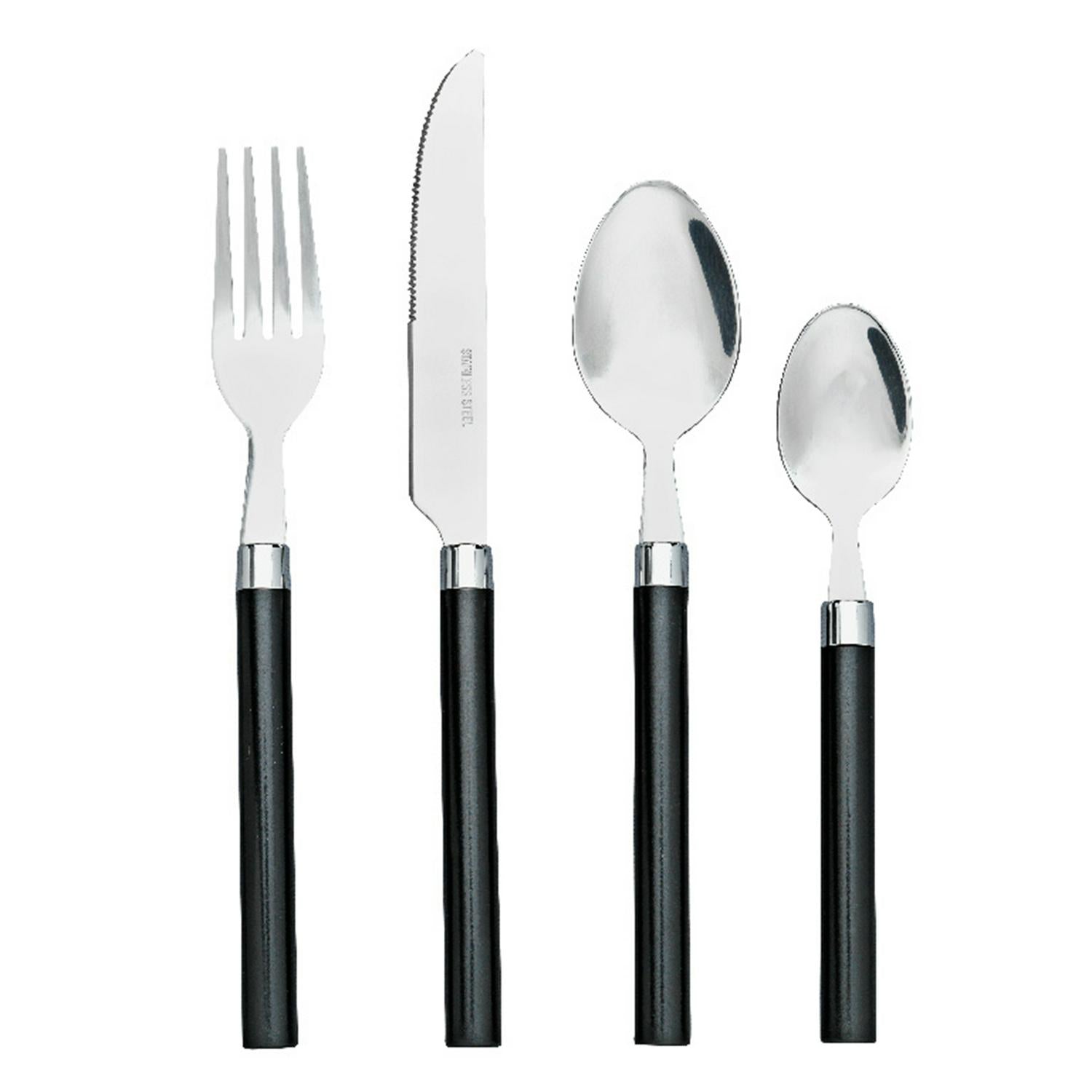 Update your everyday table setting with this functional 16-piece cutlery collection from Sainsbury's Home. The stylish black handles add a contemporary visual touch to your daily meal routines. This complete set provides all the essential utensils required for family dining and entertaining guests.