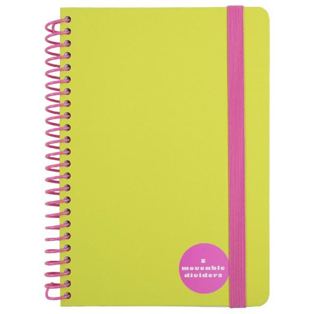 This vibrant yellow A5 project book is specifically designed for effective note-taking and comprehensive planning. It features 100 ruled pages, offering substantial surface area for all your writing and organisational requirements. The durable spiral binding ensures easy handling and effortless page turning.