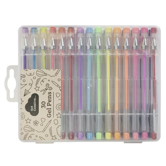 Product details Description When black and white just won't do, these 30 gel pens come in assorted colours and are ideal for school projects or to brighten up the office. Care and use: Minimise the mess—make sure children wear overalls or old clothing before getting creative. And just in case... Read More