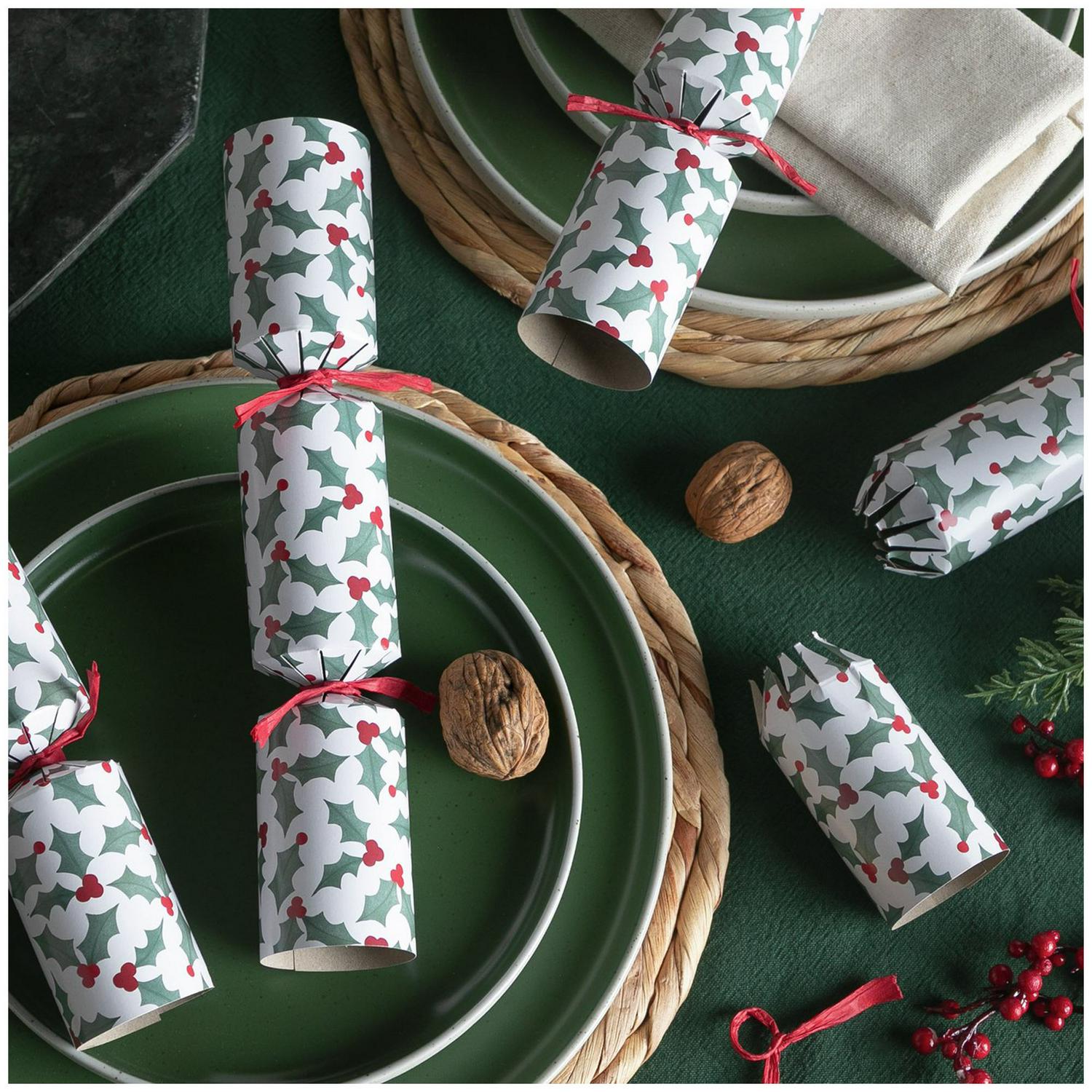 Prepare for festive celebrations with this pack of 12 Holly crackers from Sainsbury's Home. Each cracker is approximately 10 inches (25cm) long, offering substantial family fun for your gathering.