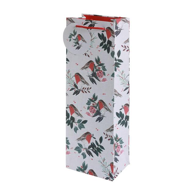 Wrap your wine or spirit bottles securely for the holidays using this charming festive gift bag from Sainsbury's Home. This recyclable bag features a cheerful print decorated with classic red-breasted robins. It includes a dedicated tag, making it simple to add a personal message for the recipient.