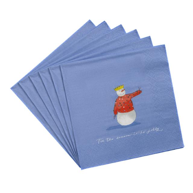 Add a jolly touch to your gatherings with these snowman-themed napkins featuring a cheerful design on a blue background. This 20-pack of 3-ply paper offers quality and festive style for any occasion. The FSC tissue material ensures responsible sourcing from well-managed forests.
