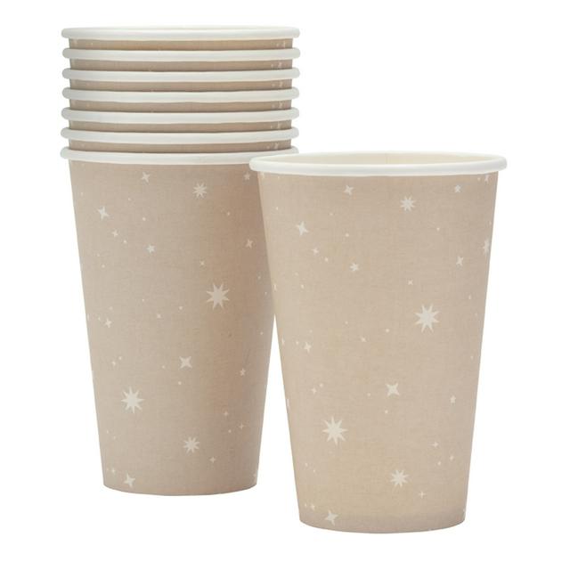 Prepare for your next event with these eight star-decorated disposable cups from Sainsburys Home. These 475ml capacity paper cups are designed for convenience and feature a fun, festive look for any occasion. They are constructed entirely from 100% food grade paper, making cleanup simple after your gathering concludes. The dimensions of each cup are approximately 18 x 9 x 9cm.