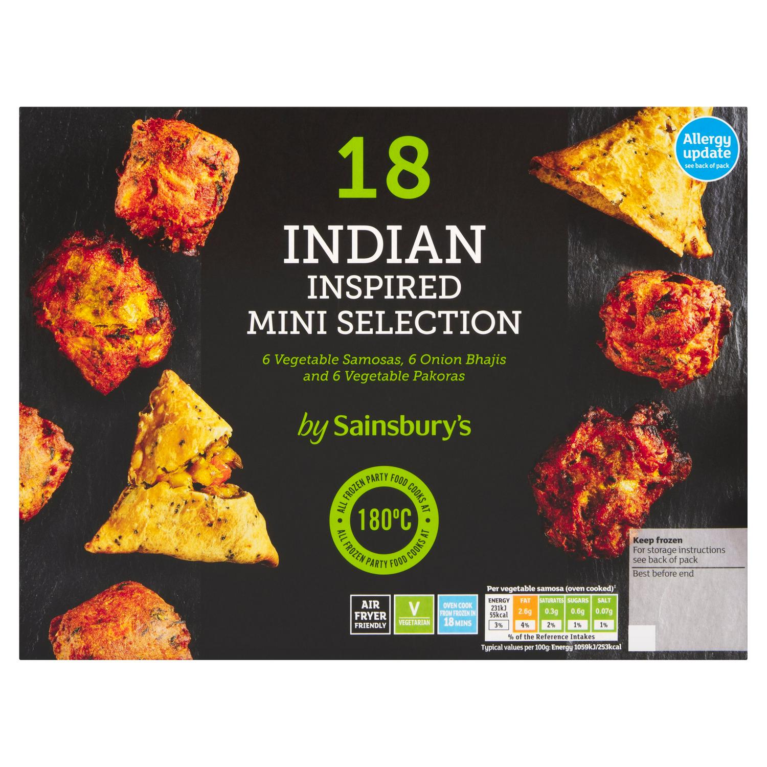 This Sainsbury's Mini Selection offers a convenient variety of popular Indian-inspired vegetarian snacks, totalling eighteen pieces per pack. It provides different textures and flavours ideal for sharing or enjoying as a light meal accompaniment.