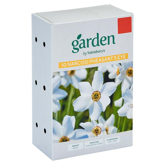 Bring classic spring beauty to your garden with the highly desirable Narcissus Pheasant's Eye bulbs. This pack contains ten individual bulbs of the Narcissus poeticus recurvus variety, known for its distinct appearance and powerful scent. These bulbs are ideal for planting to create a striking display when they bloom.